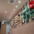 La pintura y la iluminación se unen dando como resultado un local acojedor. Resaltando los productos que el cliente quiere exponer.