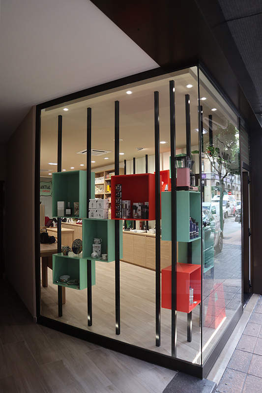 Local de unos 60m2 buscamos dar la mayor sensación de espàcio. Diseñado local con todo detalle....fusionando materiales como la ceramica, madera, cristal y aluminio con todos estos materiales en texturas calidas.
