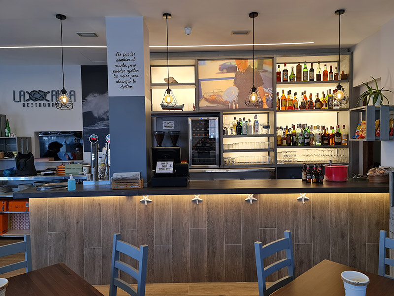 Reforma integral de local de restauración. Este trabajo fue complejo ya que esta situado junto al mar y por proximidad los materiales han de ser con un factor de protección alto debido al salitre.